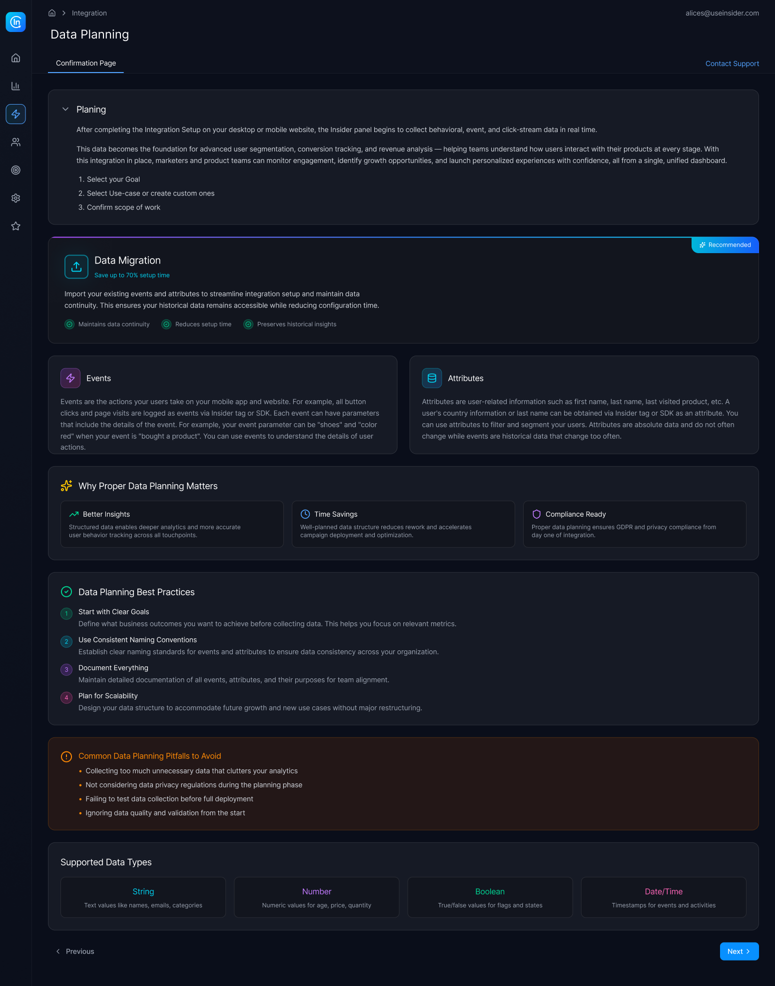 Data Planning used to be one of the most complicated steps of integration — teams had to define goals, create events, and map attributes across scattered tools and documents. This often caused confusion and delays.