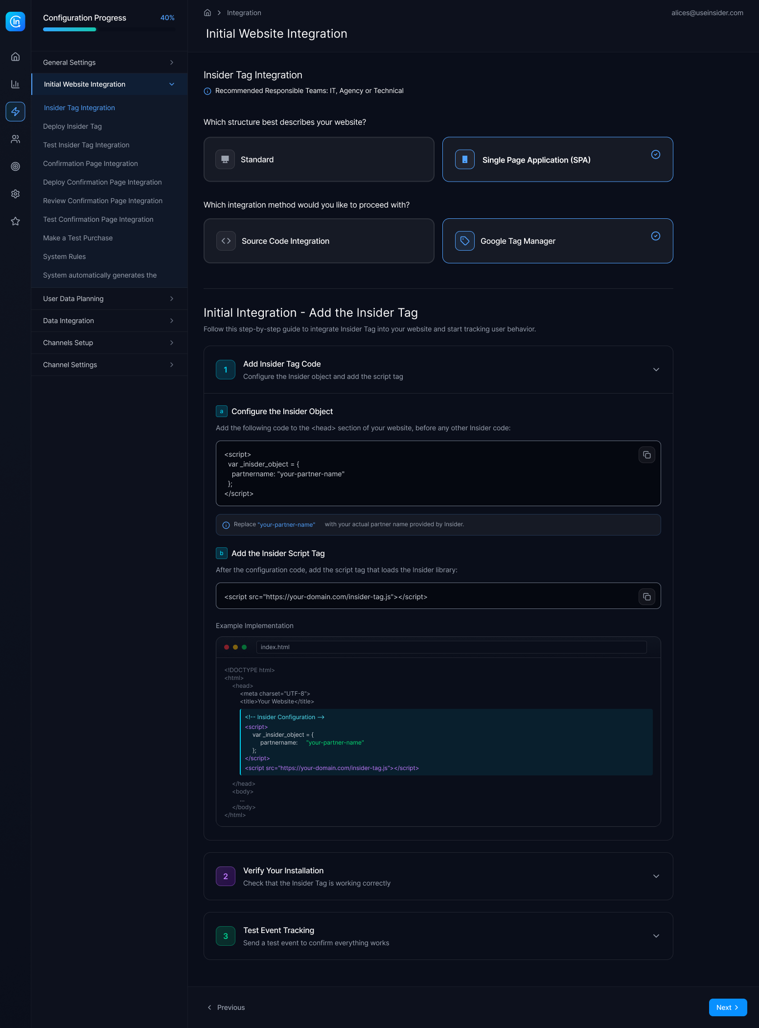 Now, users move through structured steps - from setting integration goals to creating events and attributes - all within a single workspace.
